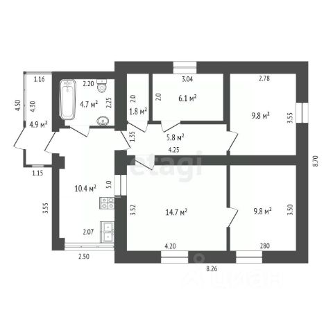 Дом светлый, общей площадью 50 кв. м., четыре комнаты (две проходные и две изолированные), большая веранда (15 кв. м.), веранда разделена 2 части , через них 2 входа в дом (дом разделен на 2 части ,объединяется только нововырубленной аркой, на фото видно) канализация соединена ,душевой поддон установлен ,унитаз надо установить, труба выведена ,кухня - котельная .