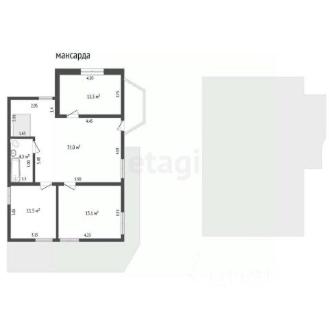 - 2-й этаж: 2 жилые комнаты, сан.узел.