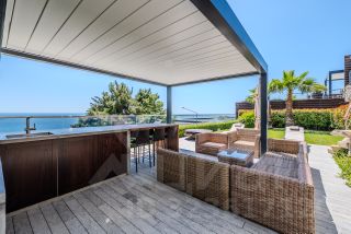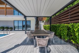 Вилла возле отеля Крымский Бриз, в коттеджном поселке Ялта Парк Хиллс. Ключевое преимущество данной виллы прежде всего — это локация. Расположена в новом, закрытом, очень охраняемом поселке (въезд только по спискам) Yalta Park Hills. Поселок находится в 180 метрах от моря, в окружении виноградников и парков, над поселком виднеется красивые отвесные скалы, а сразу под поселком находится пяти звездный отель Крымский Бриз, где расположена богатейшая инфраструктура для комфортного отдыха, до которого легко можно доехать на своем электрокаре. Еще одно преимущество виллы, конечно же — это ее новизна. Это новый дом, введен в эксплуатацию в 2021 году, два года делалась отделка и в 2023 году собственник принимал дом. Что еще важно, так это то, что собственник так и не жил, так получилось, что была приемка дома и виллу после, можно сказать, больше не посещали, так как не комфортно было добираться в Крым. Отсюда — дом в идеальном состоянии и сегодня на рынке новых таких домов, полностью готовых, где ничего делать не нужно, не найти. Сама вилла — это не единственное уже предложение в этом поселке, при этом расположение у нее одно из лучших в поселке и еще важным отличием является тот факт, что участок один из самых больших и ровных (в один уровень), и еще впереди нет домов, только море и виноградники. Строилась для себя для сезонного отдыха. Поэтому все для этого: есть СПА, бассейн с подогревом, шезлонги и стильный душ на улице, несколько зон отдыха с беседками, встроенный мангал, тандыр, дорогая аудиосистема не только на участке, но и в самой вилле и с телефона очень легко управлять и конечно же, есть отдельная стильная зона для разведения костра, у которого можно посидеть, полюбоваться закатами, которые, кстати, в этом районе особенные. Много растительности, очень выделяются и создают особую обстановку, большие пальмы. Общая площадь коттеджа 317,7 кв.м, земельный участок 7,5 соток. Планировка. 1) Второй этаж: — гараж на два авто, серверная, бойлерная — вход в дом и отдельный на участок — прихожая — 2 мастер спальни с выходом на большую террасу — на этаже 2 с/у — гардероб — котельная — есть дополнительный выход из спальни на ступени, которые ведут во двор) 2) Первый этаж: — кухня с залом — мастер спальня — на этаже 2 с/у, постирочная и кладовая — с отдельным входом комната для хранения — спа комплекс Вилла полностью укомплектована мебелью и есть все необходимое для проживания и качественного отдыха. Установлена потолочная система кондиционирования мультисплит, высота потолка 3,1 м. Техника на кухне Miele На территории виллы сделан ландшафтный дизайн, высажены средиземноморские растения (подробнее указано в ген плане участка). Установлен бассейн с подогревом, размером 7 м на 4 м. Участок в одной плоскости и с любой точки открывается отличный вид на море, виноградники, горы. У дома расположены 2 парко места (помимо гаража). Отличное предложение для тех, кому в квартире/пентхаусе тесно, а хотелось бы дом или виллу небольшой площади — это именно оно