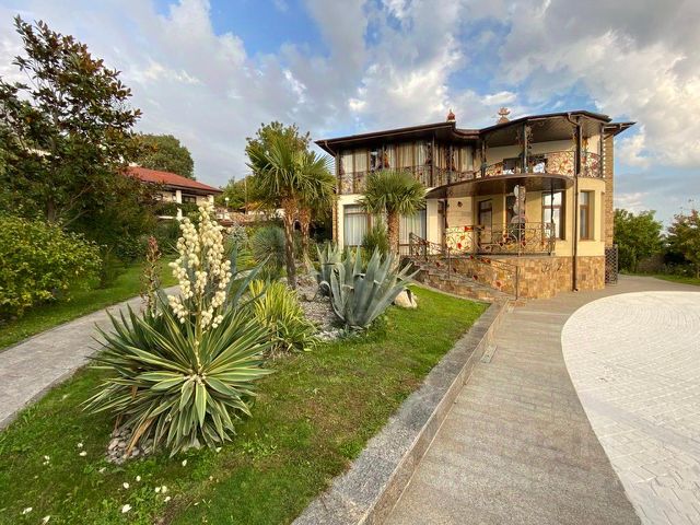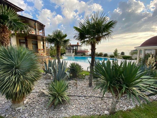 Вилла возле отеля Крымский Бриз, в коттеджном поселке Ялта Парк Хиллс. Ключевое преимущество данной виллы прежде всего — это локация. Расположена в новом, закрытом, очень охраняемом поселке (въезд только по спискам) Yalta Park Hills. Поселок находится в 180 метрах от моря, в окружении виноградников и парков, над поселком виднеется красивые отвесные скалы, а сразу под поселком находится пяти звездный отель Крымский Бриз, где расположена богатейшая инфраструктура для комфортного отдыха, до которого легко можно доехать на своем электрокаре. Еще одно преимущество виллы, конечно же — это ее новизна. Это новый дом, введен в эксплуатацию в 2021 году, два года делалась отделка и в 2023 году собственник принимал дом. Что еще важно, так это то, что собственник так и не жил, так получилось, что была приемка дома и виллу после, можно сказать, больше не посещали, так как не комфортно было добираться в Крым. Отсюда — дом в идеальном состоянии и сегодня на рынке новых таких домов, полностью готовых, где ничего делать не нужно, не найти. Сама вилла — это не единственное уже предложение в этом поселке, при этом расположение у нее одно из лучших в поселке и еще важным отличием является тот факт, что участок один из самых больших и ровных (в один уровень), и еще впереди нет домов, только море и виноградники. Строилась для себя для сезонного отдыха. Поэтому все для этого: есть СПА, бассейн с подогревом, шезлонги и стильный душ на улице, несколько зон отдыха с беседками, встроенный мангал, тандыр, дорогая аудиосистема не только на участке, но и в самой вилле и с телефона очень легко управлять и конечно же, есть отдельная стильная зона для разведения костра, у которого можно посидеть, полюбоваться закатами, которые, кстати, в этом районе особенные. Много растительности, очень выделяются и создают особую обстановку, большие пальмы. Общая площадь коттеджа 317,7 кв.м, земельный участок 7,5 соток. Планировка. 1) Второй этаж: — гараж на два авто, серверная, бойлерная — вход в дом и отдельный на участок — прихожая — 2 мастер спальни с выходом на большую террасу — на этаже 2 с/у — гардероб — котельная — есть дополнительный выход из спальни на ступени, которые ведут во двор) 2) Первый этаж: — кухня с залом — мастер спальня — на этаже 2 с/у, постирочная и кладовая — с отдельным входом комната для хранения — спа комплекс Вилла полностью укомплектована мебелью и есть все необходимое для проживания и качественного отдыха. Установлена потолочная система кондиционирования мультисплит, высота потолка 3,1 м. Техника на кухне Miele На территории виллы сделан ландшафтный дизайн, высажены средиземноморские растения (подробнее указано в ген плане участка). Установлен бассейн с подогревом, размером 7 м на 4 м. Участок в одной плоскости и с любой точки открывается отличный вид на море, виноградники, горы. У дома расположены 2 парко места (помимо гаража). Отличное предложение для тех, кому в квартире/пентхаусе тесно, а хотелось бы дом или виллу небольшой площади — это именно оно
