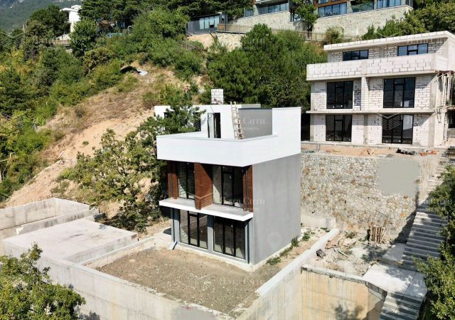 Продажа нового трехэтажного дома 223 м² под отделку, на участке 2,1 сотки с живописными видами, расположенного в спальном районе Ялты по соседству с хвойным заповедником.