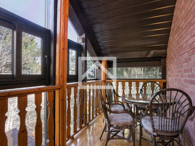 Дом построен из сруба закарпатской сосны и облицован кирпичом, кровля выполнена из металлочерепицы.