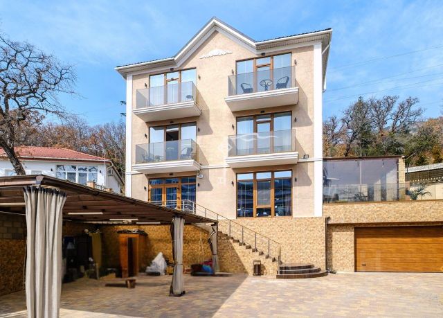 Современный дом премиум-класса с ландшафтным участком и садом в Ялте — 300 кв м комфорта на 12,1 сотках. Жилой дом в Ялте площадью 315 кв м (основная площадь 285 кв м + балконы) с чердаком 70 кв м, террасой 30 кв м и капитальным гаражом на три машины — в тихом зелёном районе Ялты, всего 995 метров от моря. Участок — 12,1 сотки (фактически больше) — включает два смежных участка с возможностью дополнительной застройки и отдельным въездом.