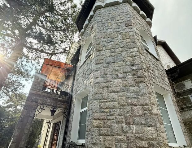 Продажа виллы в Ялте. Шикарный частный особняк построенный в виде старинного графского замка в элитном поселке среди реликтового соснового леса. Дом в элитном поселке Ялты, сосняк, подкупает своим уютом и респектабельностью. Дом пригоден для круглогодичного проживания и ожидает нового, представительного хозяина. Придомовая территория площадью 22 соток, грамотно и со вкусом спланирована. По всему периметру участка идут монолитные бутовые стены. На придомовой территории детская площадка, винный погреб, технические помещения, зоны отдыха и релакса, открытая парковка на 8 авто, гараж на два авто, большой плавательный бассейн водо вместимостью 82 куба, бассейн с постепенным уклоном разделен на детскую зону и плавательную зону для взрослых, установлена дополнительная чаша гидро ванной, над бассейном просторная лаундж зона с местами для отдыха, летней кухней и баром. Отдельно стоящий гостевой дом на первом этаже сауна с парилкой, просторный предбанник с массажными креслами действующим камином с медной вытяжкой. На втором этаже над сауной гостевые апартаменты 60 кв.м. Весь двор утопает в зелени, большая часть территории находится в тени под сенью исполинских крымских сосен, которых на участке более двух десятков, по мимо этого на участке в большом количестве произрастают туя, можжевельник, пальмы-форчуна, зеленые лужайки. Автоматизированная система полива. Особняк в Ялте введен в эксплуатацию в 2004 году, дом спроектирован и построен по индивидуальному архитектурному проекту. Фундамент железо бетонная плита, каркас и перекрытия железо бетонный монолит, полости заполнены природным камнем ракушкой в полный камень, облицовка дома выполнена редким и красивым Гаспринским камнем серого цвета с алыми прожилками. С северной стороны дома отдельный вход в комнату для персонала. Комната персонала состоит из кухни-студии с евро ремонтом и просторного сан узла. Комната полностью автономна. На первом этаже виллы в Ялте прихожая, отопительные котлы, кабинет, кухня-гостиная сан узел. На втором этаже виллы в Ялте две хозяйские спальни с выходами на балкон. Балконы ориентированы на север и юг. На балконах установлена садовая мебель, с балконов открывается вид на море и хвойный лес. Так же на втором этаже расположен сан узел и душ, изысканная просторная ванная комната, большой встроенный шкаф и детская комната. Третий этаж комната отдыха-Бильярдная, спорт зал. Лестница между этажами выполнена из натурального массива дерева. Дом изумительный не имеет аналогов в Крыму, идеально подходит для частной резиденции для круглогодичного проживания или для сезонного отдыха в сосновом реликтовом лесу в окружении тишины, респектабельности и комфорта. Достаточно увидеть этот дом и в него невозможно не влюбится с первого взгляда.