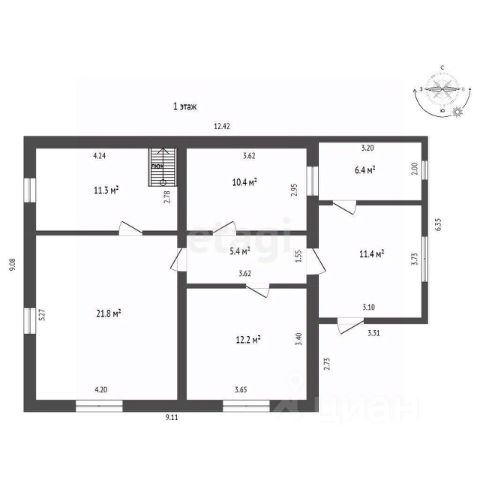 - 1-ый этаж: (90,3 кв.м.): гостиная с зоной кухни 50,6 кв.м., жилая комната 11,4 кв.м, прихожая 17,6 кв.м., санузел 6,1 кв.м., гардеробная 4,1 кв.м.;