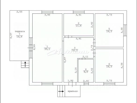 Жилой дом: 104,1/37,6/34,5 кв. м.