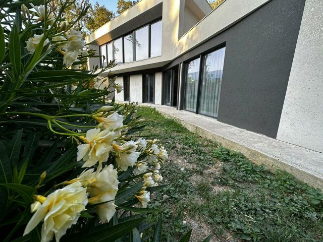 На территории, кроме дома, расположен сад с плодовыми и декоративными растениями, декоративный бассейн, летняя беседка, зона барбекю.