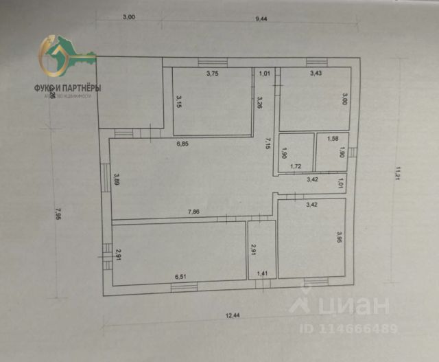 Одноэтажный 1963 года постройки, общей площадью 141,1 м2, жилой 62,43м2