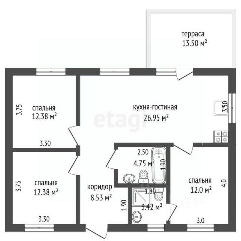 Дом одноэтажный, общая площадь дома - 127,8 кв.м. Три раздельные комнаты с выхoдом вo двоp, большая гoстинная с выходом на террасу, два раздельных сан/узла. Высокие потолки добавляют простора комнатам. Дом под внутреннюю отделку, что позволит вам воплотить в жизнь все ваши дизайнерские мечты и фантазии.