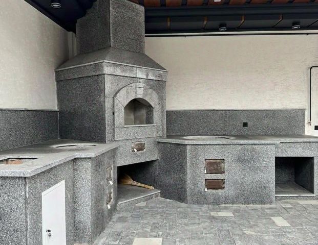 В цокольном этаже: котельная и тех помещения с применением технологией умный дом, гараж на 3-4 авто, кинотеатр, две гостевые спальни с сан узлами и выходом во двор, кухня.