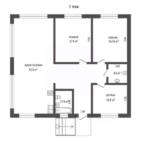 Второй дом общей площадью 132,2 кв. м. В нём располагаются: прихожая-коридор, раздельный сан.узел, кухя, 3 спальни и холл.