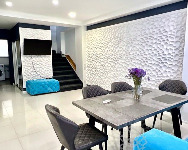 Продается шикарный дом в ТСН "Садоводы Каменского" в черте города Алушта (Республика Крым, ЮБК), в пяти минутах ходьбы от дома "Судакское кольцо" с остановками общественного городского транспорта в любую точку Крыма (пересечение улиц Судакская и Красноармейская). Тихий и очень уютный район. По расстоянию от моря 25 минут прогулочным шагом. Дом двухэтажный, общая фактическая площадь дома 183,2 кв.м. Крыша плоская. Имеется подвал в цоколе дома, размером 3х2,8х2 (высота) м. Фундамент дома ленточный, бутобетонный. Каркас дома монолитный ж/бетонный, заполнение внешних стен выполнено из ракушняка крымского. На втором этаже стены большой комнаты выложены из пеноблоков, крыша покрыта профнастилом, также как и у беседки. Наружная часть дома утеплена и подготовлена под чистовую отделку. Внутренняя отделка дома выполнена полностью, кроме большой комнаты на втором этаже. На первом этаже совмещенный санузел, техническое помещение, жилая комната, кухня совмещенная с гостиной. На втором этаже три жилые комнаты, совмещенный санузел. В большой комнате предусмотрен отдельный выход со второго этажа. Имеется беседка, зона отдыха с цветником и фонтанчиком, бетонированная. Небольшой огород, крытая площадка под автомобиль. Все дорожки забетонированы. Забор комбинированный, выполнен из дерева и сетки рабицы. На участке растут: виноград, инжир, слива, черешня, малина, черная смородина и др. Электричество, центральный водопровод и канализация, газ. Отопление и подачу горячей воды обеспечивает 2-х контурный газовый котел и есть дополнительно резервный электрокотел. Интернет. Вся встроенная мебель и техника остается новому собственнику. По фасаду основного дома и террасы второго этажа, необходимо завершить отделочные работы и это вы сможете сделать самостоятельно по своему желанию и дизайнерскому решению для вас.