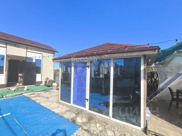 На территории участка высажены много плодовых деревьев, среди которых абрикос, инжир, яблоня, есть мангальная зона, курятник, сарай, мастерская, уличный туалет и раковина. Все коммуникации подключены: электричество, вода в доме и разводка по участку для полива, отопление и горячая вода от двухконтурного газового котла (водяные теплые полы), канализация - яма, так же имеется емкость 25м3 для запаса воды. На территории установлено видеонаблюдение как по улице, так и во дворе.