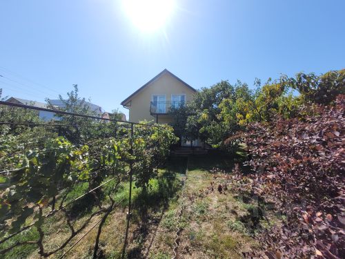 Уютный домик из камня , внутри отделка деревом , снаружи плиткой из известняка , вокруг дома четыре взрослых сосны и две ели . Участок разбит на три зоны : виноградник ,огород , цветник. На участке есть бассейн для полива . Забор и подпорные стены выполнены из гранитного бута.
