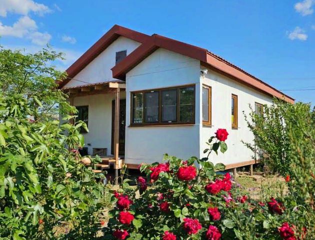 Продается дом 88 м2 на участке 6 соток СНТ в Уютном. В доме 3 изолированные комнаты, кухня-студия 17 м2. Установлен кондиционер, бойлер на 150 литров на горячую воду. Стены расписаны художником. Электричество 1 фаза 5 кВ, при желании можно подключить 3 фазы. Газификацию обещают в следующем году. Водоснабжение - скважина, по желанию есть возможность подключения к центральному. Двор облагорожен, засажен различными кустами и цветами! Растут плодовые деревья, черная смородина, виноград. Во дворе хозблок для хранения садовых инструментов, санузел с душем с горячей водой, летний душ. Установлена беседка с живой изгородью из винограда. Навес под две машины. В шаговой доступности : детский сад, новая школа, дворец культуры, аптеки, магазины, амбулатория, остановка общественного транспорта. Расстояние до моря - 2 км , до Евпатории - 4 км. Продажа дома в СНТ в селе Уютное Сакского района.