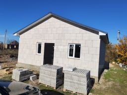 Коттедж 150 кв.м ( 2 этажа и цоколь ), дополнительно к дому примыкает хозблок состоящий из капитального гаража, котельной и мастерской общей площадью 50в.м. и расположен на участке 5 соток. В доме, на первом этаже кухня - где четыре окна, из которых вид на лужайку и во дворик, гостиная и санузел, на втором этаже две небольшие спальни, одна с выходом на балкон, с которого открывается прекрасный вид на лес, небо, звезды.... В цокольном этаже сауна, санузел, большая комната-зал с двумя окнами и отдельным выходом на лужайку. В доме три санузла. Газовое отопление (трехконтурный газовый котел), которое сделано так, что вы можете обогревать только то помещение или комнату, где находитесь..Построен дом из ракушки, облицован силикатным кирпичом, утеплен пенопластом и покрыт "короедом". Водопровод центральный+ скважина+ накопитель на 3 куба. Канализация - две ямы, одна подведена к кухне, вторая к санузлам . Ухоженный участок с газоном , фруктовыми деревьями и растения из крымских питомников.
