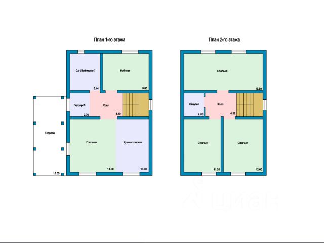 На первом этаже находится кухня, санузел и две комнаты, на втором одна большая комната и две маленькие.