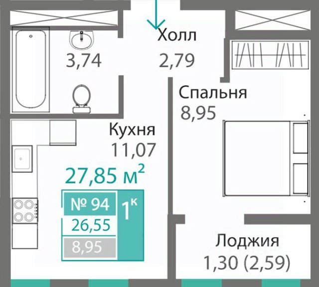 Продаётся 1-комнатная квартира в строящемся доме (Дом 2 (Секции Т2.1, Т2, К3КП1)), срок сдачи: I-кв. 2029, общей площадью 27.85 кв.м., на 9 этаже. Новый жилой комплекс "Благо" от застройщика "Монолит" расположен по адресу: Республика Крым, Симферопольский район, село Перово