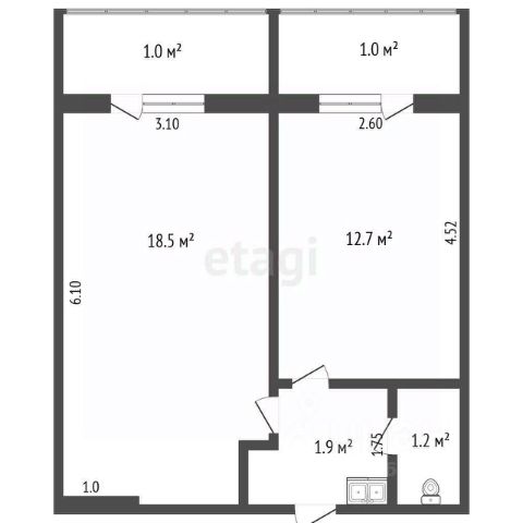 Продуманная планировка: просторная кухня для семейных завтраков, две отдельные комнаты, аккуратный санузел.