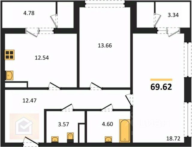 • ✅ Объект наибольшей площади: 69,6 м²