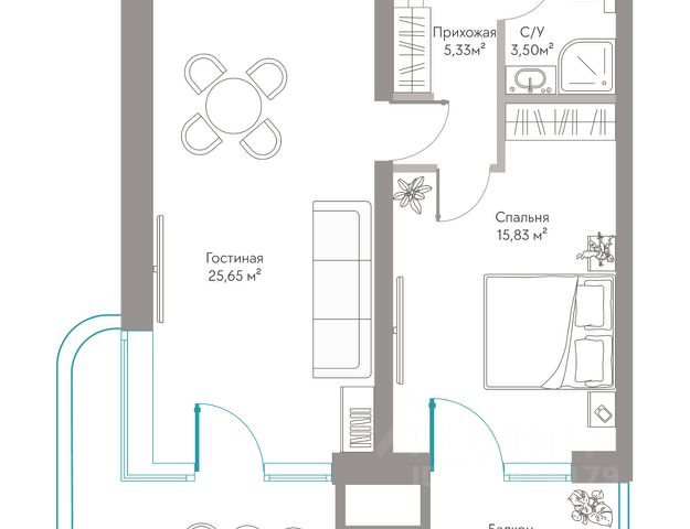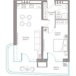 В строящемся кластере на первой береговой линии Tempo продаются отличные однокомнатные апартаменты с видом во двор, которые состоят из кухни-гостиной 20,8 м2, комнаты 14,7 м2, двух санузлов 5,0 и 3,4 м2, и балкона 8,7 м2. Общая площадь с балконом 52,6 м2.