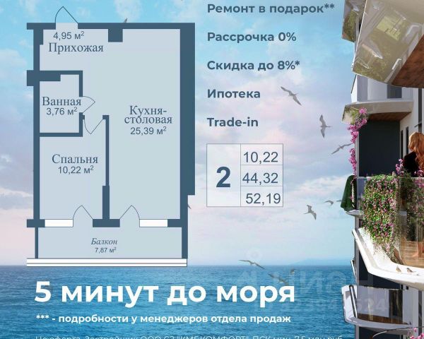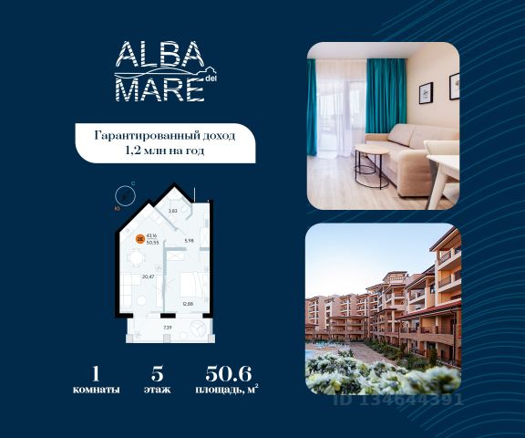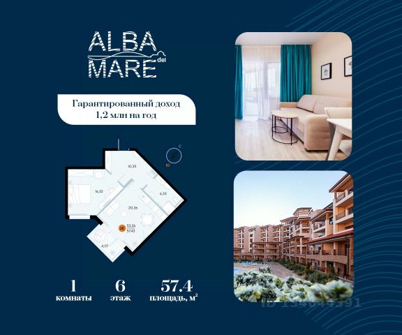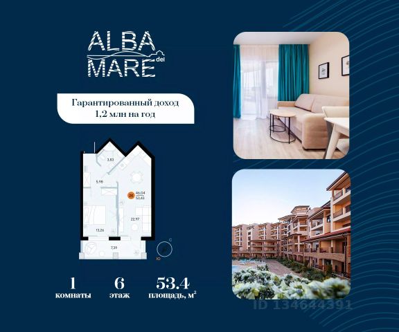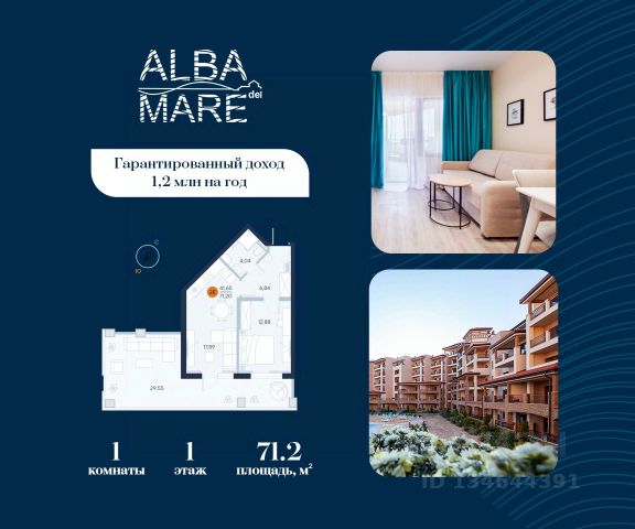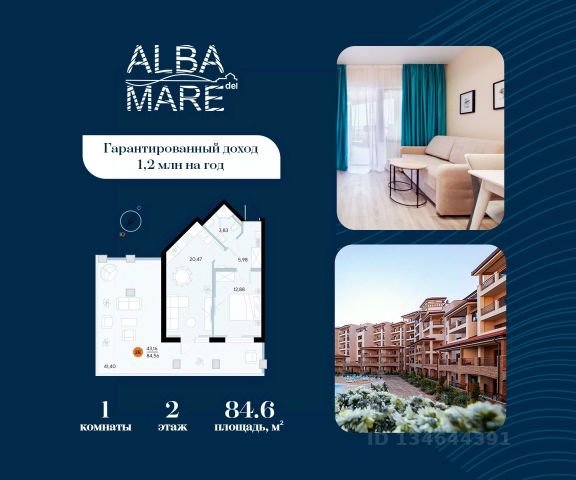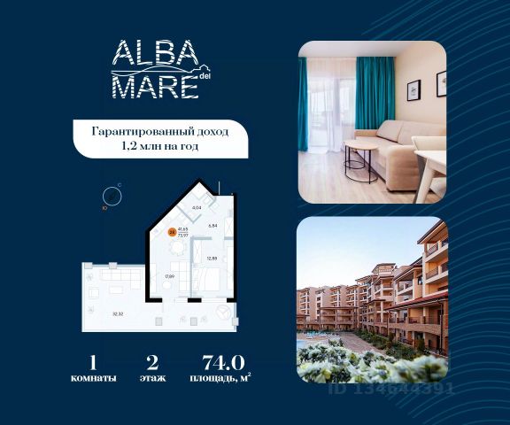 Продаются апартаменты в построенном комплексе. Срок сдачи 4 квартал 2024 года. Альба Дель Маре это комплекс апартаментов бизнес-класса с развитой инфраструктурой. Уютные здания переменной этажности строятся в 5 минутах ходьбы (385 метров) от одного из лучших пляжей Евпатории "Супер Аква Бич". Широкая береговая линия, места для активного отдыха и зоны релакса позволят насладиться отдыхом на любой вкус. Архитектурное решение комплекса создает истинное ощущение Средиземноморья и присутствия на дорогом курорте: скатные черепичные крыши, козырьки и навесы-перголы, арочные завершения проемов, цветовая палитра отделки и фасадов, где используются оттенки желтого, охры, терракоты и бежевого. Переменная этажность здания формирует камерность проекта, создавая прекрасные видовые характеристики для каждого апартамента. Просторные террасы с видом на море, патио с собственным выходом к бассейну на первых этажах комплекса, детская и спортивная площадки, ландшафтный дизайн здесь все создано для роскошного отдыха и расслабления. Территория комплекса апартаментов закрыта и находится под круглосуточным видеонаблюдением, что позволит резидентам и гостям чувствовать безопасность проживания. Концепция комплекса: комфорт проживания с первых дней заселения. Реализация апартаментов осуществляется с полной отделкой под ключ. Собственники апартаментов имеют возможность поручить управление недвижимостью профессиональному оператору, что позволит получать стабильный доход. Автономная газовая котельная позволит не зависеть от внешних отключений отопления., парковочные места на закрытой территории комплекса обеспечат безопасность вашему автомобилю, система центрального кондиционирования создаст комфортную температуру в каждом номере. Жилой комплекс реализуется в соответствии с 214 ФЗ.