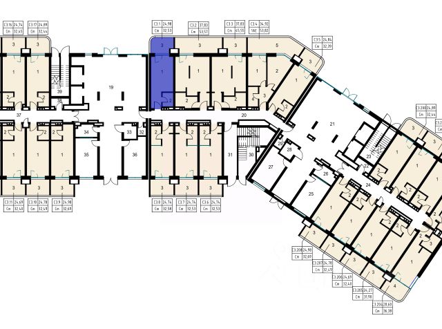 Продаётся 3-комнатная квартира в сданном доме (Дом 62), срок сдачи: III-кв. 2024, общей площадью 70.2 кв.м., на 2 этаже.