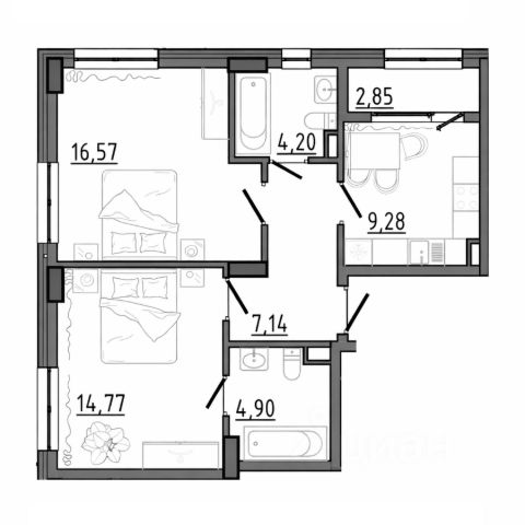 Комнаты раздельные 17,8 кв. м., 12,2 кв. м., 10,8 кв. м.