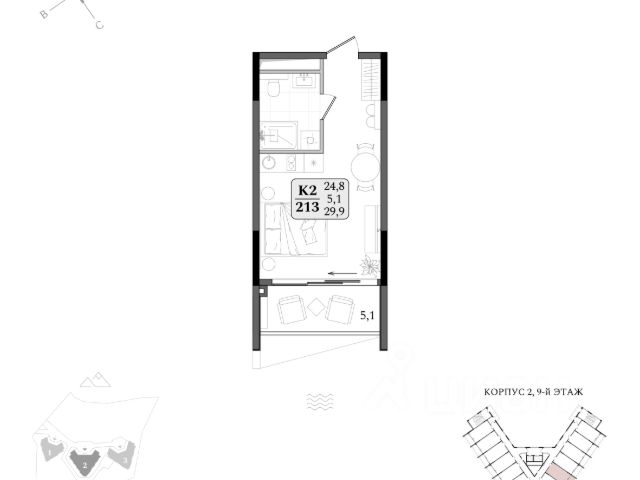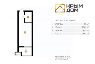 Общая площадь 31 кв.м. (студия)