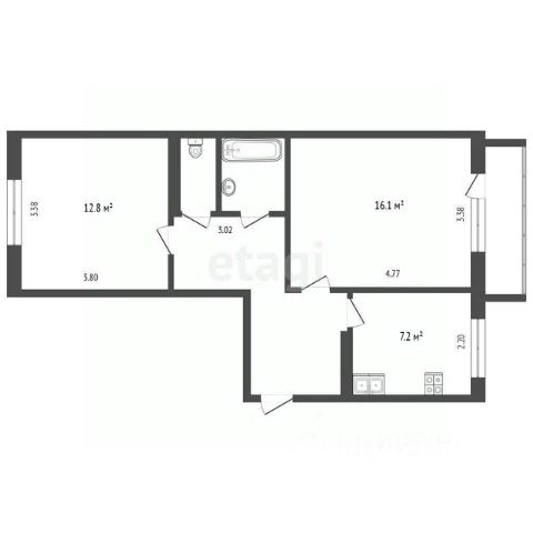 Квартира расположена на 1 этаже 9-этажного многоквартирного жилого дома 49, удобной планировки с изолированными комнатами, раздельным санузлом и двумя лоджиями. Квартира общей площадью - 48 м. кв., жилая площадь - 35 м. кв., кухня - 9 м. кв.
