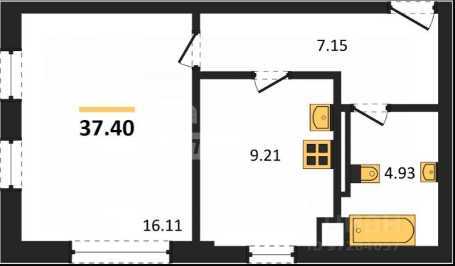 * Общая площадь 34,81 м²: Продуманное пространство без лишних перегородок! .