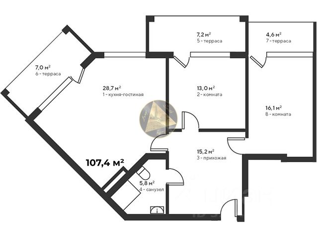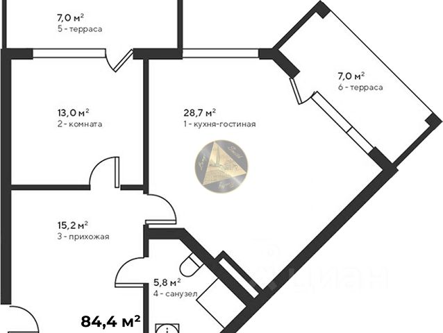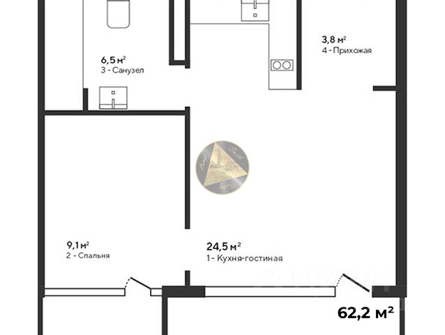 Жилая площадь: 24 м²