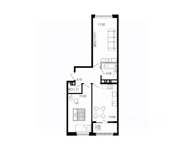 В продаже евро-двухкомнатный апартамент в ЖК "SkySoul Resort" — жемчужине на Крымском побережье.