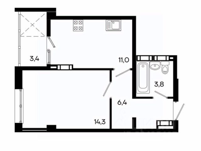 квартир: компактные студии от 34,9 кв. м; универсальные однокомнатные от 38,9 кв.
