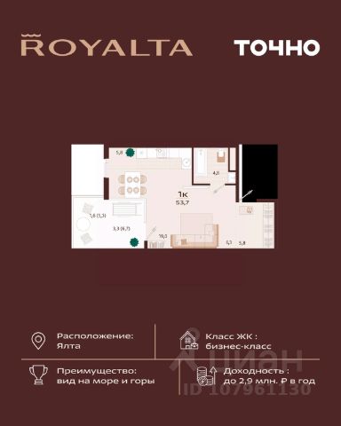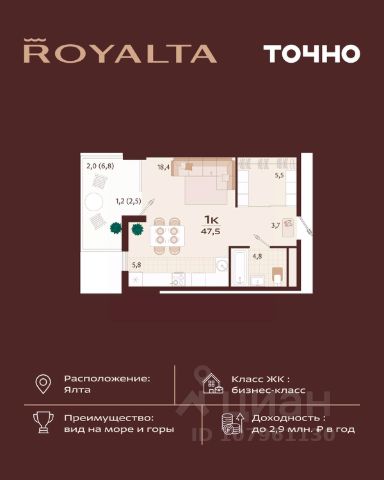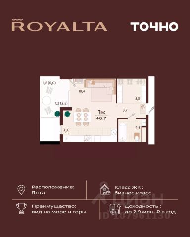 Дворец ХХI века в сердце Крыма! ИНВЕСТИЦИЯ В САМЫЙ ЛИКВИДНЫЙ АКТИВ ЯЛТЫ: Локация всё включено: Вы в шаге от набережной, ресторанов, театров и галерей. Жизнь бурлит прямо у вас под ногами, а тишина и уют ждут вас дома. Максимальная доходность: Спрос на качественное жилье с ВИДОМ НА МОРЕ в центре Ялты — стабильно высокий круглый год. Стоимость только растет: Премиальная недвижимость в условиях ограниченного предложения в центре — лучший актив для сохранения и приумножения капитала. Почему стоит рассмотреть этот проект: • Премиум-класс: закрытая территория, подземный паркинг, бассейн Infinity, террасированный ландшафт, двор без машин. • Роскошь без компромиссов: Сервис 5 звездочного отеля! Премиальная управляющая компания, которая вызовет Вам такси из аэропорта, подготовит квартиру для проживания, либо сдаст номер гостям Ялты! •Вид, который меняет всё: Утренний кофе и вечерний бокал вина с панорамой Ялтинского залива. Ваша главная достопримечательность — прямо за окном. • Высокий инвестиционный потенциал — рост цены уже на этапе стройки Хватит смотреть на море - пора жить с видом на него! Звоните — расскажу про гибкие условия оплаты в Вашей Южной резиденции!