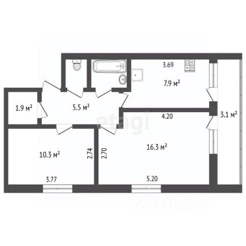 -Общая площадь: 67.4 м2