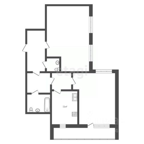 Квартира расположена на 1 этаже 9-этажного многоквартирного жилого дома 49, удобной планировки с изолированными комнатами, раздельным санузлом и двумя лоджиями. Квартира общей площадью - 48 м. кв., жилая площадь - 35 м. кв., кухня - 9 м. кв.