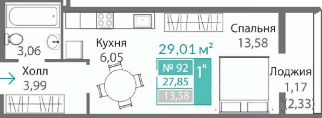 квартир: компактные студии от 34,9 кв. м; универсальные однокомнатные от 38,9 кв.