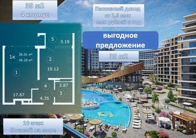 "SkySoul Resort" — новый жилой комплекс от застройщика СЗ ДК "СКГ", предлагающий комфортное жильё для тех, кто ценит качество и удобство. В комплексе представлены апартаменты различных планировок: от студий до двухкомнатных. Площадь апартаментов варьируется от 27,4 до 86 м². Некоторые варианты включают большие террасы, где можно наслаждаться видом на окружающую местность.