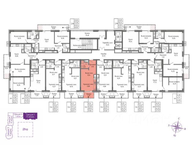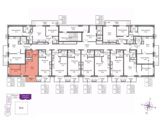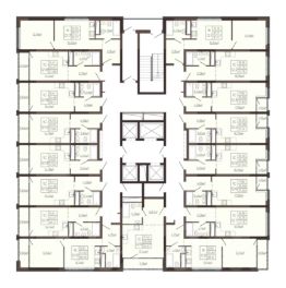 В монолитно-кирпичных секциях первой очереди предусмотрены студии, однокомнатные, двухкомнатные, трехкомнатные квартиры и квартиры с террасами.