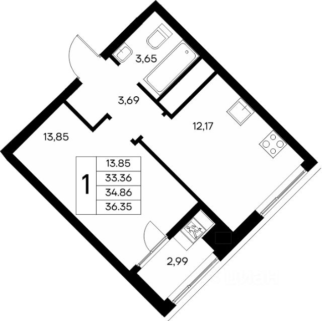 Площадь: 22.81 м².