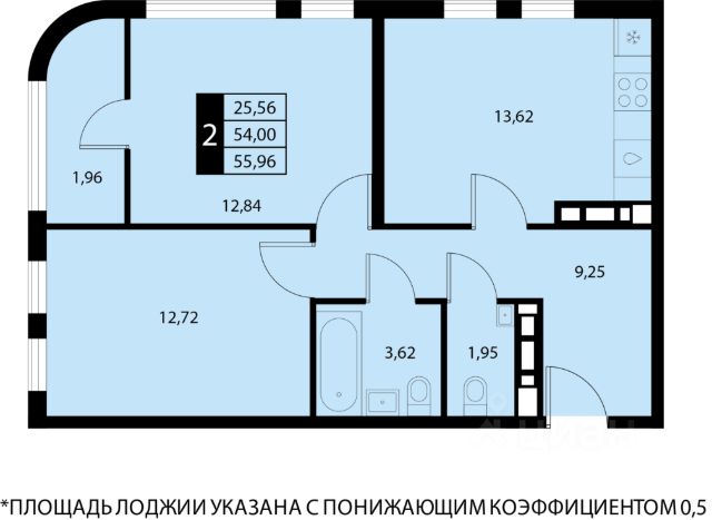 Площадь апартамента составляет 56 кв.м. Из окон и балконов открываются панорамные виды крымских пейзажей.