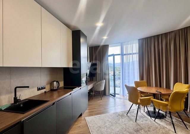 В квартире сделан дорогостоящий дизайнерский ремонт . Вся черновая отделка от застройщика была демонтирована и переделана . Выведены коммуникации на террасу для раковины и установки джакузи . На полу широкоформатная напольная плитка 120/60 глянцевая антискользящая . Апартаменты с приватным балконом на последнем этаже . От застройщика последний этаж стоил на 10% дороже. Нет соседей на против которые могут смотреть в окна апартаментов . Прекрасный вид на горы и море . На террасе 3 зоны , зона spa, зона отдыха и барбекю.