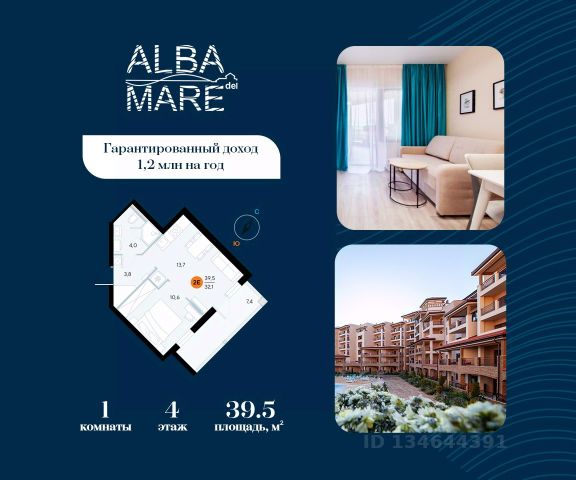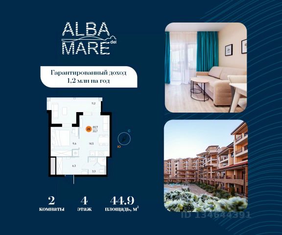 Продаются апартаменты в построенном комплексе. Срок сдачи 4 квартал 2024 года. Альба Дель Маре это комплекс апартаментов бизнес-класса с развитой инфраструктурой. Уютные здания переменной этажности строятся в 5 минутах ходьбы (385 метров) от одного из лучших пляжей Евпатории "Супер Аква Бич". Широкая береговая линия, места для активного отдыха и зоны релакса позволят насладиться отдыхом на любой вкус. Архитектурное решение комплекса создает истинное ощущение Средиземноморья и присутствия на дорогом курорте: скатные черепичные крыши, козырьки и навесы-перголы, арочные завершения проемов, цветовая палитра отделки и фасадов, где используются оттенки желтого, охры, терракоты и бежевого. Переменная этажность здания формирует камерность проекта, создавая прекрасные видовые характеристики для каждого апартамента. Просторные террасы с видом на море, патио с собственным выходом к бассейну на первых этажах комплекса, детская и спортивная площадки, ландшафтный дизайн здесь все создано для роскошного отдыха и расслабления. Территория комплекса апартаментов закрыта и находится под круглосуточным видеонаблюдением, что позволит резидентам и гостям чувствовать безопасность проживания. Концепция комплекса: комфорт проживания с первых дней заселения. Реализация апартаментов осуществляется с полной отделкой под ключ. Собственники апартаментов имеют возможность поручить управление недвижимостью профессиональному оператору, что позволит получать стабильный доход. Автономная газовая котельная позволит не зависеть от внешних отключений отопления., парковочные места на закрытой территории комплекса обеспечат безопасность вашему автомобилю, система центрального кондиционирования создаст комфортную температуру в каждом номере. Жилой комплекс реализуется в соответствии с 214 ФЗ.