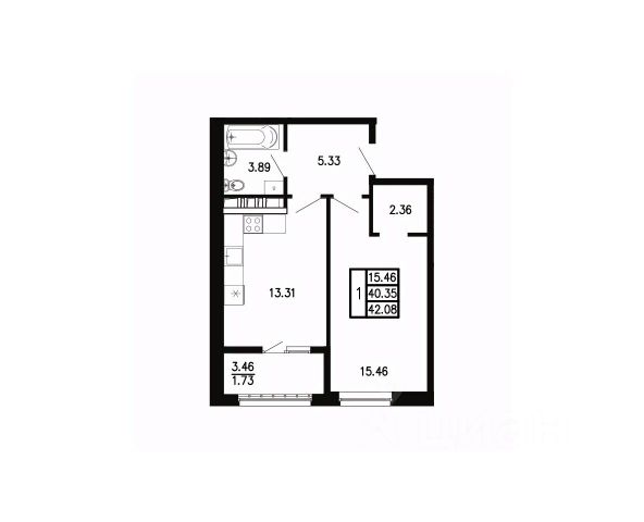 коридор, кухня, 2 комнаты, совмещенный санузел.
