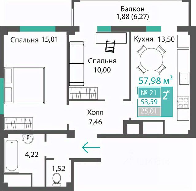Гостиная 17.11 м2;