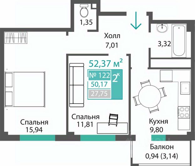 Кухня 9,94 м2;