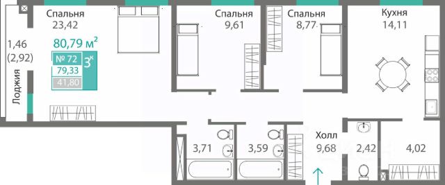 Продаётся 3-комнатная квартира в строящемся доме (Дом 2 (Секции Т2.1, Т2, К3КП1)), срок сдачи: I-кв. 2029, общей площадью 79.33 кв.м., на 6 этаже. Новый жилой комплекс "Благо" от застройщика "Монолит" расположен по адресу: Республика Крым, Симферопольский район, село Перово
