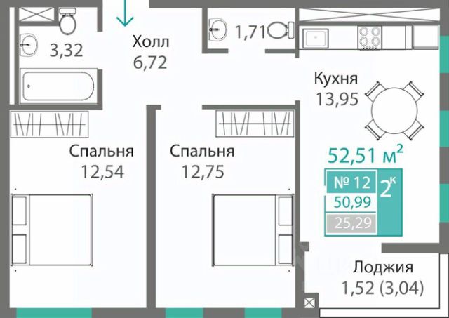 Продаётся 2-комнатная квартира в строящемся доме (Дом 2 (Секции Т2.1, Т2, К3КП1)), срок сдачи: I-кв. 2029, общей площадью 52.16 кв.м., на 2 этаже. Новый жилой комплекс "Благо" от застройщика "Монолит" расположен по адресу: Республика Крым, Симферопольский район, село Перово