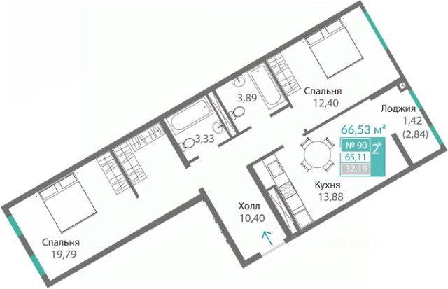 - удобные двухкомнатные от 64,6 м